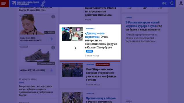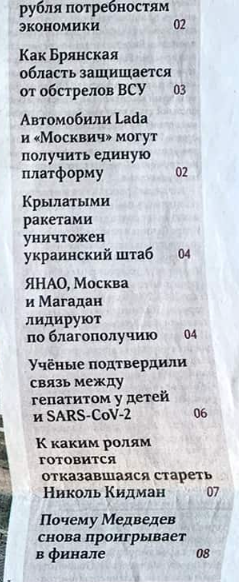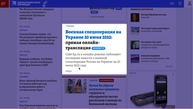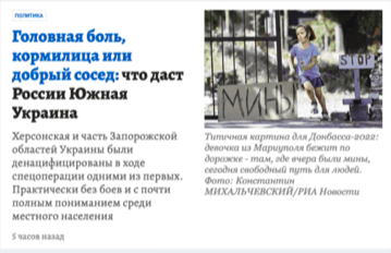 《Komsomolskaja Prawda》在6月20号打出如下标题: "乌克兰南部给俄罗斯带来了什么"。此次采访关于赫尔松地区(Cherson)和扎波罗热部分地区(Saporischschja)的未来,俄罗斯军队已经对这些地区进行了 "去纳粹化"。