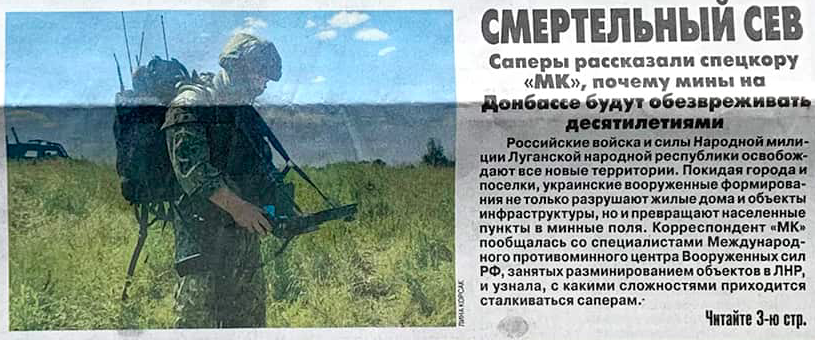 为什么今后几十年都要在顿巴斯拆除地雷。文章写道,当乌克兰军队撤退时,他们甚至把有人居住的地方都变成了雷区。