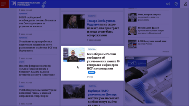 ✦ 另一篇文章描述了俄军的军事成就:据说俄军的导弹在一次打击中击毙了50多名乌克兰军官。