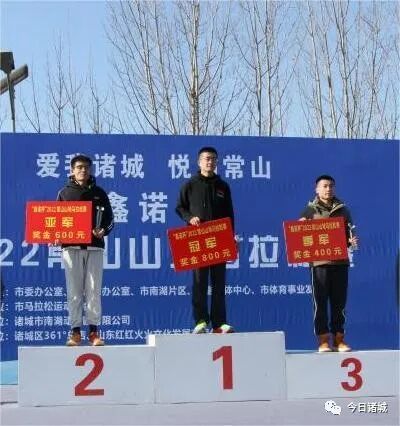 9:30,常山风景区西门起跑点,出席领导、嘉宾集体鸣枪,近700名选手矫健开跑。队伍沿着景区内新建成的内部环山道路蜿蜒而上,赛道两旁树木丰茂,空气清新,路面宽阔平整、标识清晰,彩色的标线绵延环绕与山林相伴,选手们奔跑其中,享受着速度与激情,欣赏着冬日的如画美景,感受着活力诸城的生态魅力。整条赛道环绕常山,全长8.8公里。经过激烈角逐,男子组分别由徐桂伟、袁洪磊、张传伟获得冠亚季军,女子组分别由曲光云、胡善梅、鞠焕欣获得前三名。