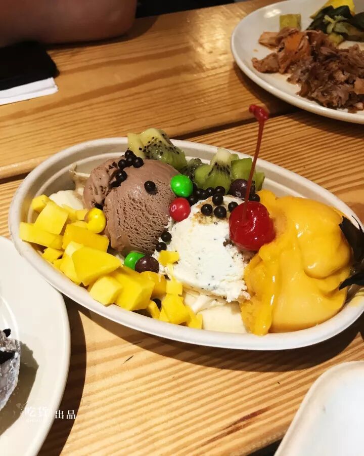 我们点了香蕉船,冰激凌味道很正