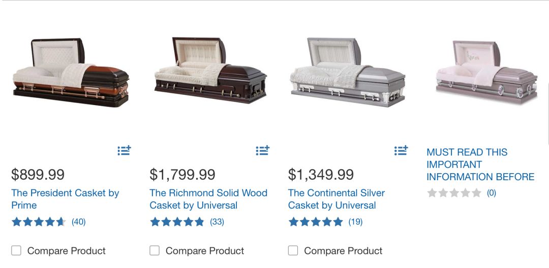 红白喜事er,找Costco。根据2014年的调查数据显示,在美国举办一场葬礼的平均花费高达$7181,可是不便宜。不幸中的万幸,costco就提供相对便宜的棺材啊!!!!