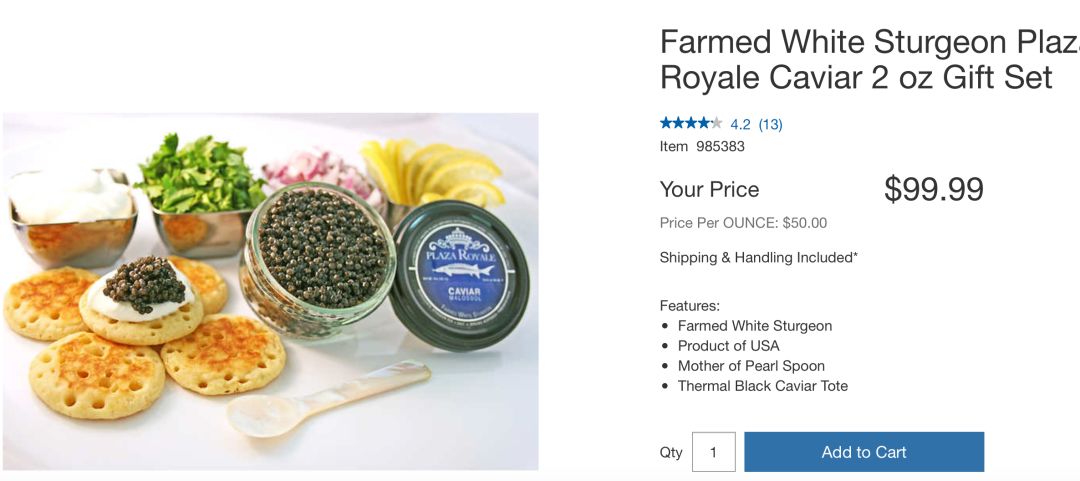 别看这种鱼子酱是在Costco卖的,但是从品质到包装可都不马虎。鱼子酱有很多不同的种类,而且还配一个小勺和一个便携的保温包。不过鱼子酱在加州已经被禁了,在加州的Costco朋友们只能去外州碰碰运气啦!