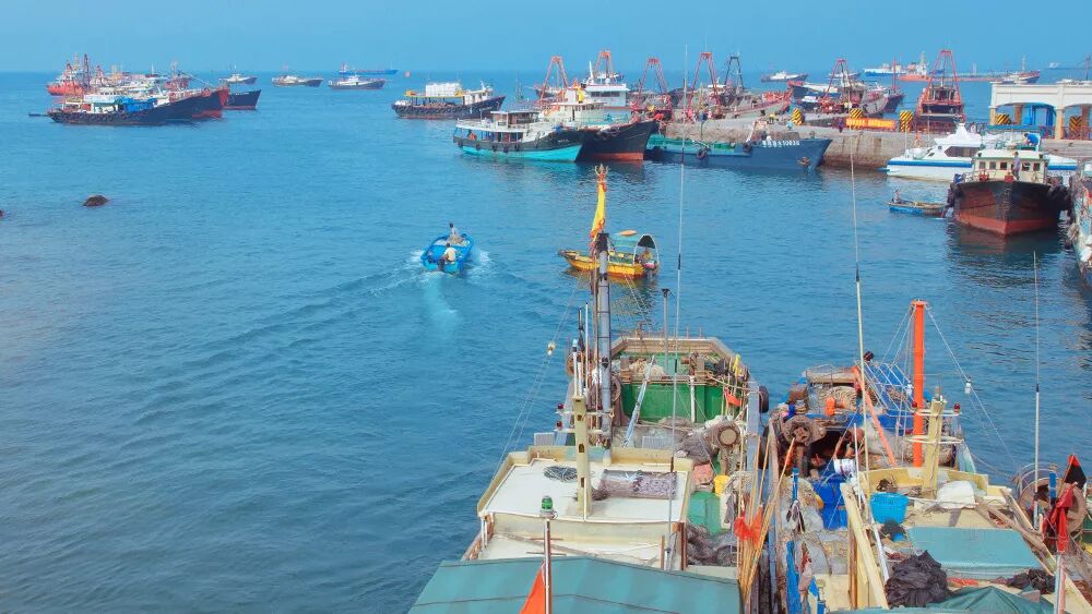 庙湾的海是蔚蓝的,船儿点点,浪花声声;庙湾的山是挺拔的,守望着无边无际的蓝天;庙湾的阳光是灿烂的,天空纯净,鸟儿飞翔,世界明亮又美丽。