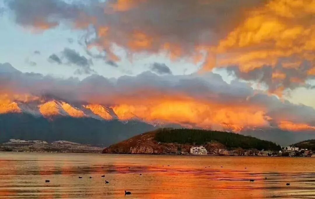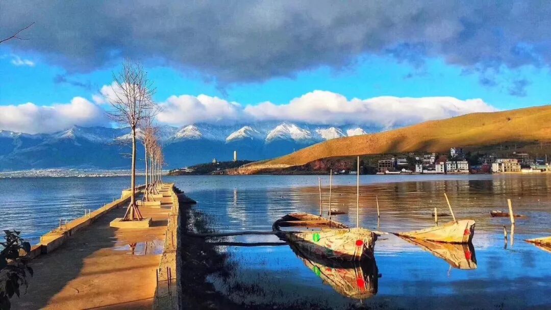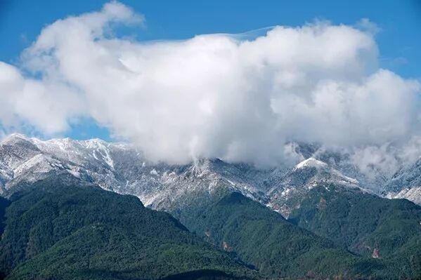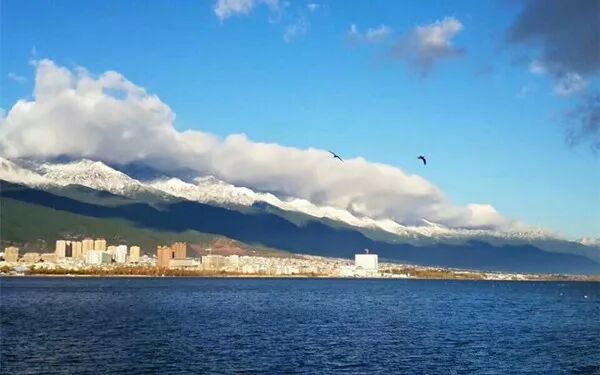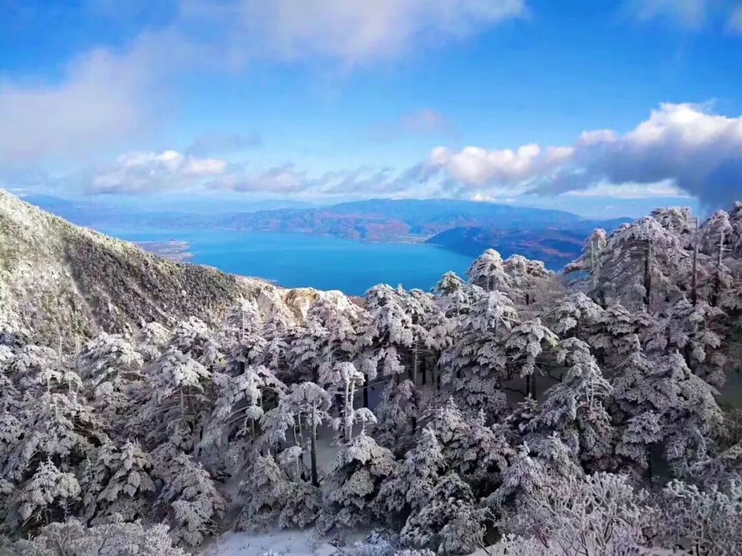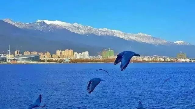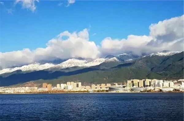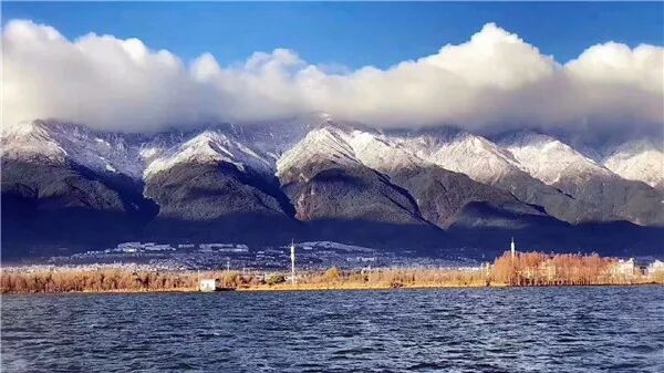 守护洱海姑娘的山神们就像戴上了白帽子,