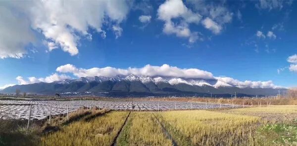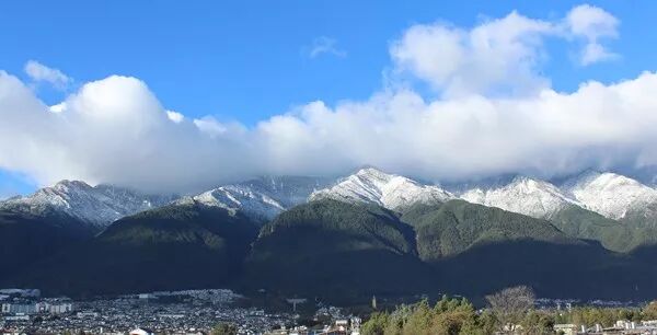 苍山十九峰的峰顶白雪茫茫,