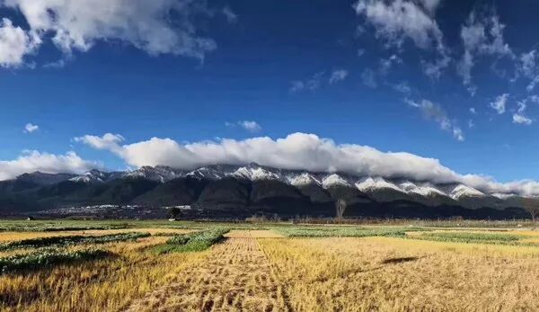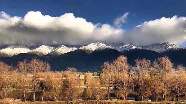 天蓝云白,山青雪净,墙粉瓦黛