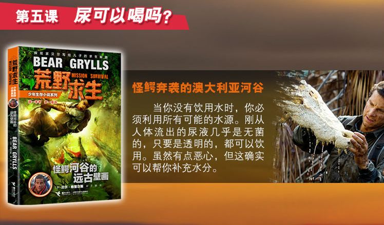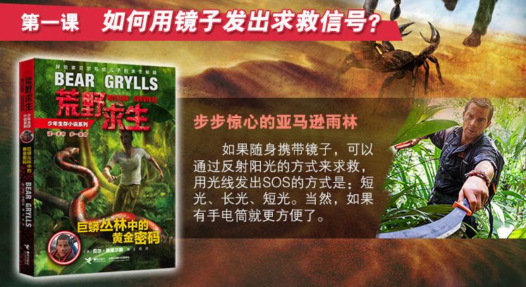 贝尔将自己丰富的野外生存经验融入精彩的少年历险小说,在动人心魄的故事情节中,生动描述了上百种简洁而实用的求生技巧,传递了野外求生的永恒的法则“永远保持微笑,只要活着就有希望”,使小读者在危险环境中,镇静从容,险境求生。
