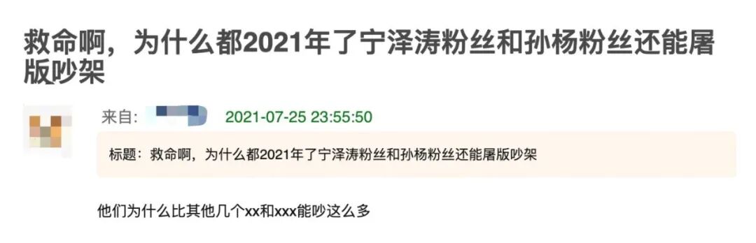 江湖传言,孙扬宁泽涛两人有矛盾。双方粉丝对捕风捉影的消息深信不疑,互相看不顺眼,谩骂攻击如家常便饭。