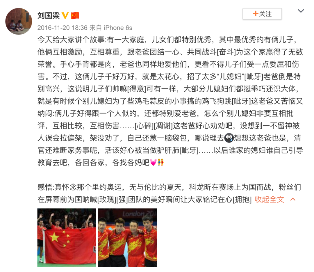 最后,刘国梁不得不出来劝架,劝两位“儿媳妇”别再互相伤害。
