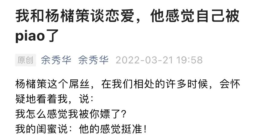 4. 余秀华的“女权风波”:说个话就成了女权,女权也太容易了,公众号:脱氧核甜,2022-09-22