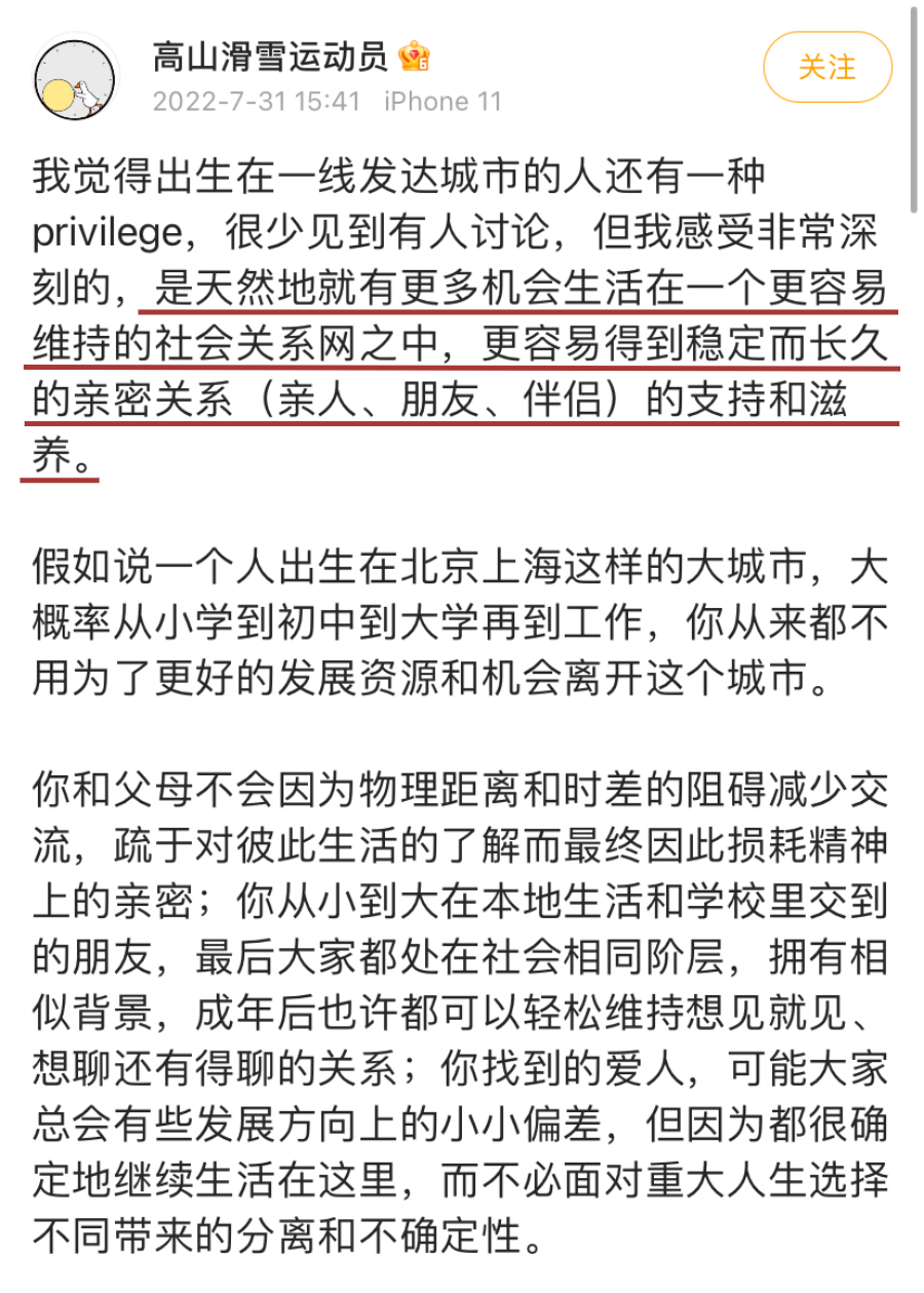 人们非常羡慕这样的人生状态:不纠结、不费劲、游刃有余、潇洒快意。在城市里长大的孩子,可以自如地四处旅游、看演出、找乐子;自然地出入健身房,冬天滑雪、夏天冲浪,一切都得心应手。朋友圈里同学天南海北地旅游,而自己回家飞机都不敢坐,要为了抢一张火车票绞尽脑汁。去年,互联网上几乎同一时期,出现了两个“消费挑战”。一个是,挑战一个月只花500元,要穷尽一切手段才能“不吃泡面不啃馒头”。世界的参差已尽数体现,松弛感,哪里是你想松弛就能松弛的?比起行动上的自由潇洒,情感和心态上的松弛更难以习得。去年“小镇做题家”成为全网热词的时候,有一位名为@高山滑雪运动员 的网友,发出过这样的感叹,引发了很多人的共鸣。“我羡慕出生就在一线城市的人。只要他们愿意,他们就可以留在自己熟悉的生活圈子里。”不必为了更好的发展机会和资源离开从小到大生活的地方,离开自己的亲人、朋友和伴侣。而小镇做题家,从农村到县城、到省城再到一线城市,一路往外走,一路都在抛弃过去的自己,重新适应和塑造新的自我。要面对的除了漂泊感和孤独感,还有了解到世界的参差,时时席卷而来的幻灭感。对城市生活了如指掌,穿梭其中自由、轻松、舒适,实在是一种幸运得不能再幸运的“特权”。城里的孩子,从出生开始如影随形的心态和技能,对其他人来说是需要后天习得,甚至是争取才能得到的。小镇做题家也许需要花好几年的时间,好几倍的精力,在拥有一定的经济基础之后,才能真正适应城市的生活,摆脱那种尴尬、发怵和窘迫的感觉。《如何如何》评论区,有一位网友提到,自己来到大城市从读书到工作,这么多年过去,才终于可以坦然地在贵价水果摊上说:怎么这么贵,我不想要了。终于有一天,自己再也不会怕别人瞧不起自己,也不会迫于面子被架在那里下不来台。是的,不了解城里的生活模式,在陌生的环境中手忙脚乱,往往会给人带来强烈的羞耻感。—— 仅仅因为不了解,就会被人视为贫穷、匮乏、没见识和土气。《如何如何》系列视频,最大的意义正是在于,它撕开了城市生活中真实的一面。在中国40多年的城市化的进程中,上亿的人从小地方迁移到大城市,每个人都或多或少地经历了困窘的适应过程。几乎所有人都把这种适应过程当做理所当然,一种类似于优胜劣汰,适者生存的高高在上的自然法则,从来没有人在乎过,在这过程中,大家经历了怎样的心理挣扎。你的茫然无助,你的无所适从,原来也是可以放到台面上,大大方方分享和交流的感受。终于有人温柔而坦然地告诉大家:你不懂也没关系,很多人都不懂,我愿意耐心教你。这一系列的视频成了互联网上少有的,温柔的、慈悲的一刻。一个看似毫无必要的教程,背后保护的,是几百上千万人那颗小小的,却又时时颤动着的自尊心。说到底,这些在城市生活的技能,如何点餐、如何坐地铁、如何看病……其实都只是一种资讯信息。和“在农村生活的技能”一样,本身并没有高低贵贱之分。农夫不懂交通规则,不是愚蠢,他只是不理解;就像城里人到了农村,同样搞不懂高粱和小麦的区别。曾经火爆一时的《变形记》里,让城市的孩子和乡村的孩子身份对调,而每一个城市的小孩,到了农村都是抓瞎状态。只不过,同样是水土不服,但很显然的一点是,城里的孩子去农村不会有羞耻感,反而充满了喜剧色彩。杜华的儿子去农村背猪,他的“笨拙和失败”成了网上经久不衰的段子,但大家不会说他有城市病,反而只会夸他可爱,反差萌,叫他“最惨富二代”。日常生活中常常使用的“见识”“眼界”这些词汇,对于农村与城市的价值判断,何为高级、何为低级非常鲜明。同样是基于生活体验了解到的知识,能否如数家珍讲出不同航空公司餐食的区别,与走过一条乡间小路能叫出所有路过的植物名称,隐含其中的价值判断是截然不同的。在农村、小地方积累的生活经验和常识,很长一段时间内,是不被探讨和欣赏的。但知识和信息本身并没有立场,是人用自己的习惯和偏见,强加在信息之上的价值判断。而这种价值判断是会发生变化的,一切原本以为理所当然得价值判断,未必像我们从来以为的那么牢靠。某种程度上,如今的互联网正在冲击和改变着这种现象。李子柒塑造的农村生活,如何劈柴做饭,饮牛喂马,关心粮食和蔬菜,让全世界都看得津津有味;哪怕是在网上教人如何省钱,也能成为抠组一姐,接受媒体采访……这是一个一切的生活方式都有独特价值的时代,也是一个价值多元的时代。不必傲慢或者大惊小怪,只是大家彼此的成长环境,了解的信息并不相同罢了。“每逢你想要批评任何人的时候, ”他对我说,“你就记住,这个世界上所有的人,并不是个个都有过你拥有的那些优越条件。”不要嘲笑别人的手足无措,坐上顺风车的你,从来都只是少数。