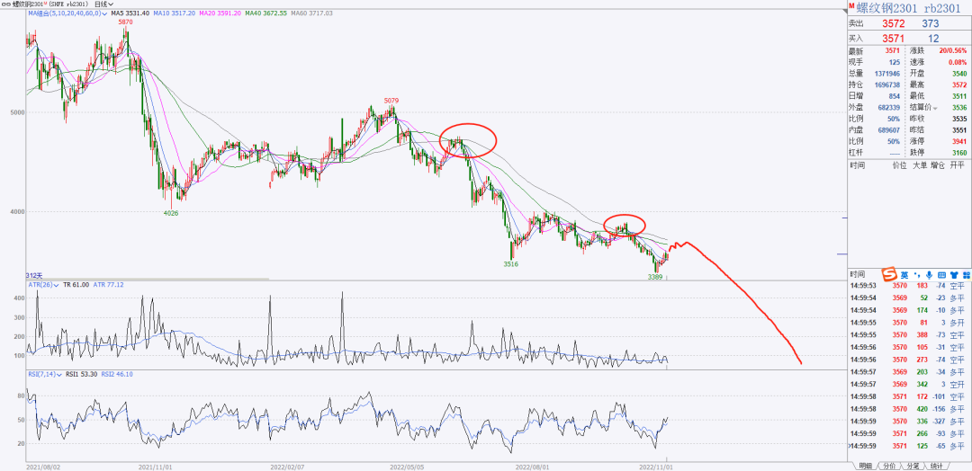 1、螺纹热卷今天小幅反弹,现在的形态不是底部,是反弹,我还是等反弹到60均线之后的做空机会。