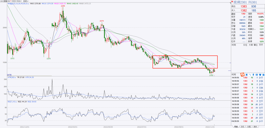 4、玻璃跌破了前期低点1400之后反弹,现在等待支撑转压力确认,确认之后可以做空玻璃。