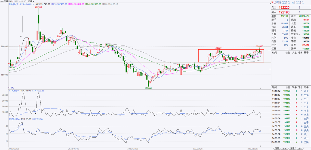 3、沪镍均线多头排列,可以等标k出现之后做多。