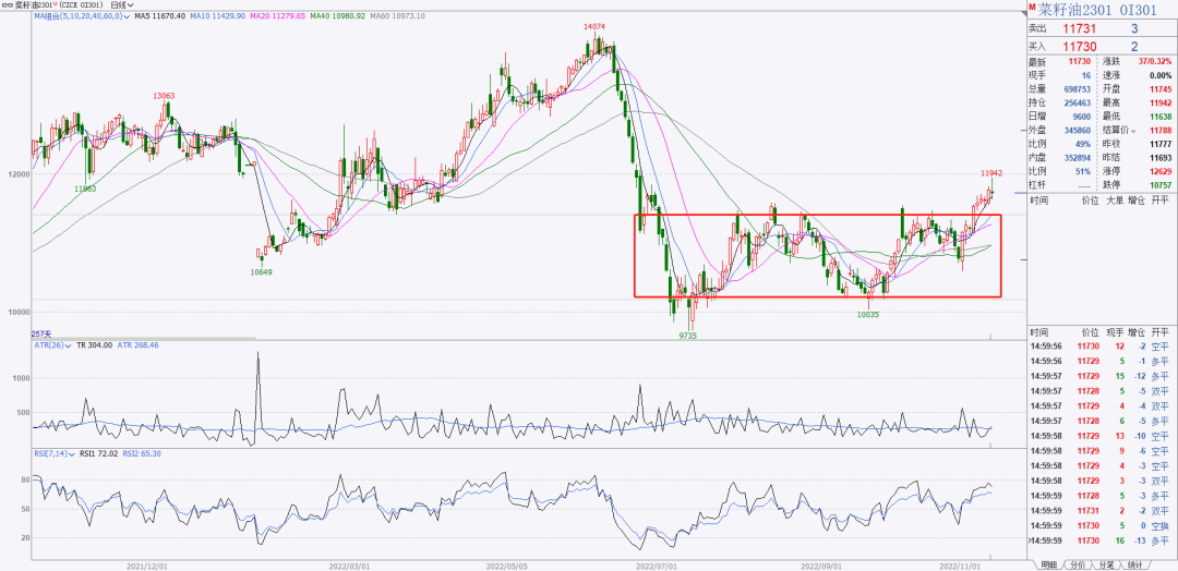 昨晚操作了一次,做多了菜油。油脂从2020年涨到现在,现在的技术图形我觉的值得试一下多单。
