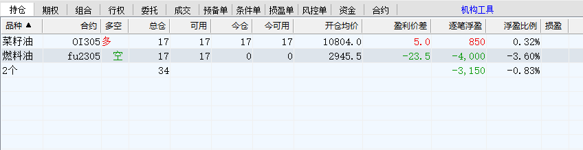 1、菜油我看多,我昨晚轻仓做多了菜油05,继续持有。05的波动小一点,可以多拿几天。油脂就是感觉走势挺强的,棕榈每次跌下去都能涨起来,菜油均线多头排列,我觉的多单值得一试。