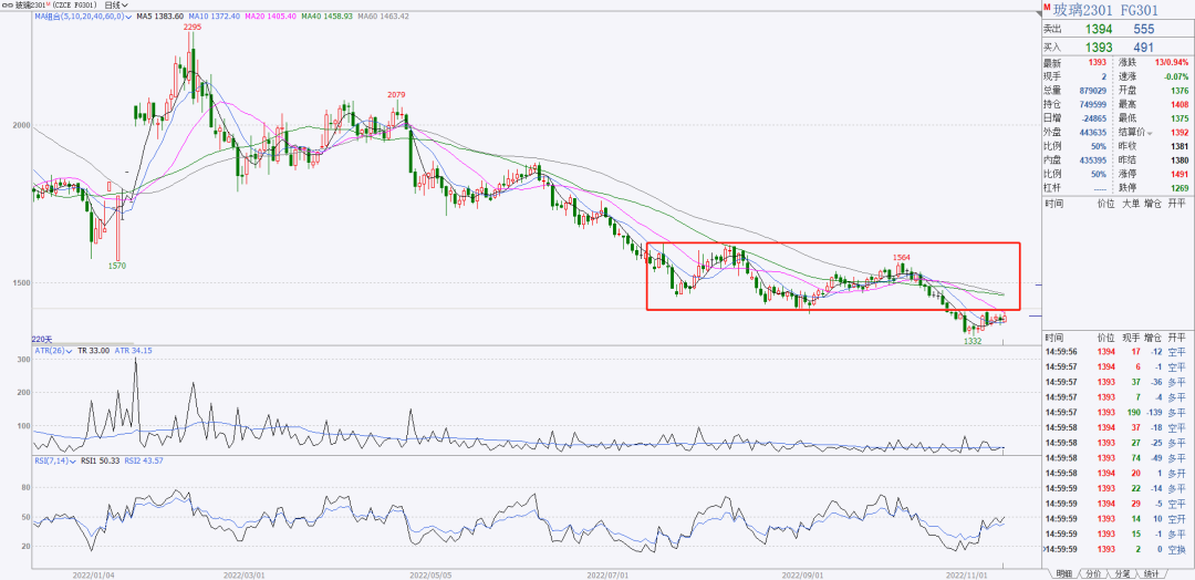 4、玻璃跌破了前期低点1400之后反弹,现在等待支撑转压力确认,确认之后可以做空玻璃。等待出现反包阴线。