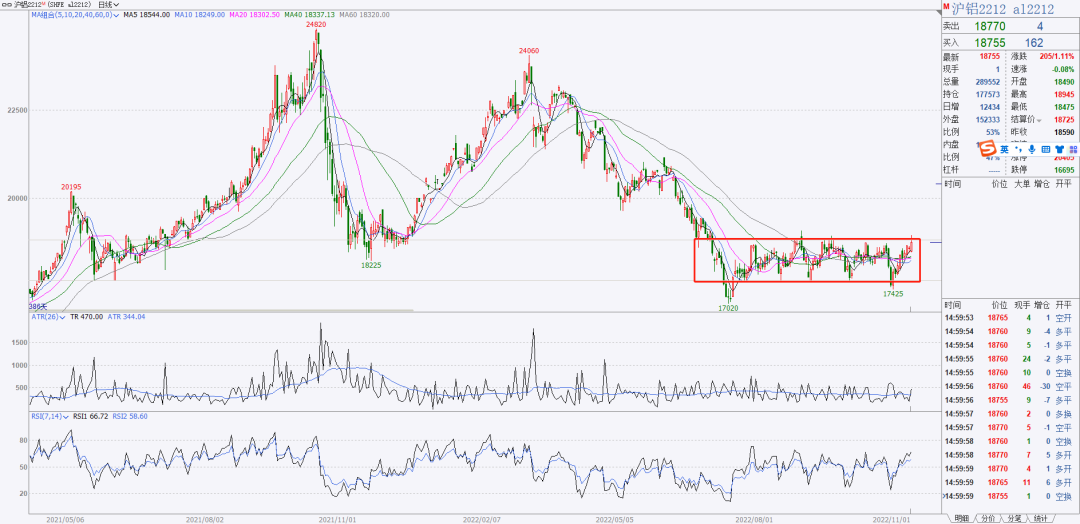 2、沪铝还是在震荡区间。