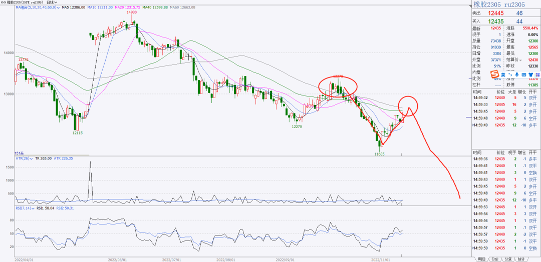 2、橡胶05关注行情能否反弹到60均线,能否出现3浪下跌行情。