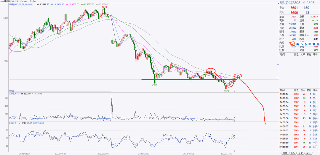 1、螺纹热卷今天很牛,多头很强,收盘长阳线,行情要反弹到60均线了,我觉的不是底部,现在的计划是等待反弹结束,60均线附近出现反包阴线就尝试做空。以螺纹05为例分析一下,3556的支撑转压力没有成功,反弹会延续,现在观察60均线附近反弹能否结束。