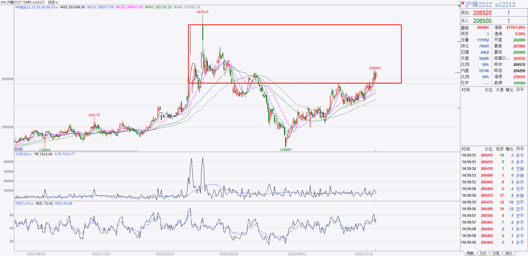 3、沪镍连续上涨之后到了压力位附近开始调整,这种最好是观望。