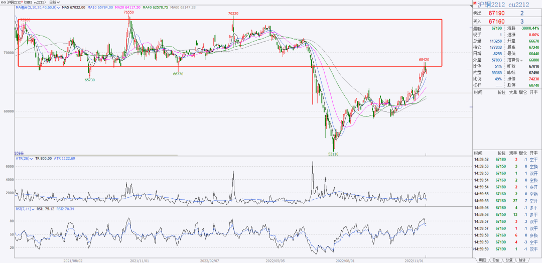 1、沪铜连续上涨之后到了压力位开始调整,现在不参与只观望。