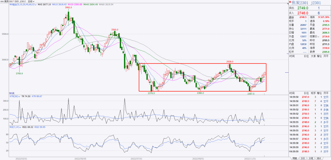 2、焦炭焦煤我现在只看得出是宽幅震荡,其他的看不出来,观望。