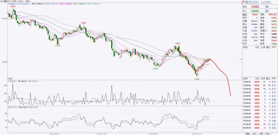 2、橡胶05关注行情能否反弹到60均线,能否出现3浪下跌行情。