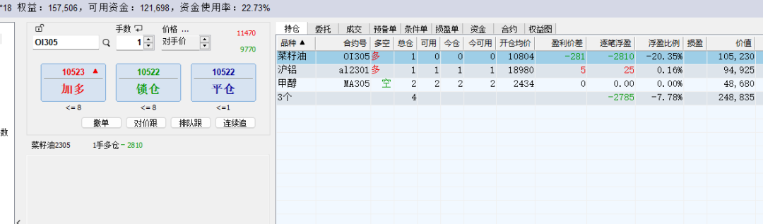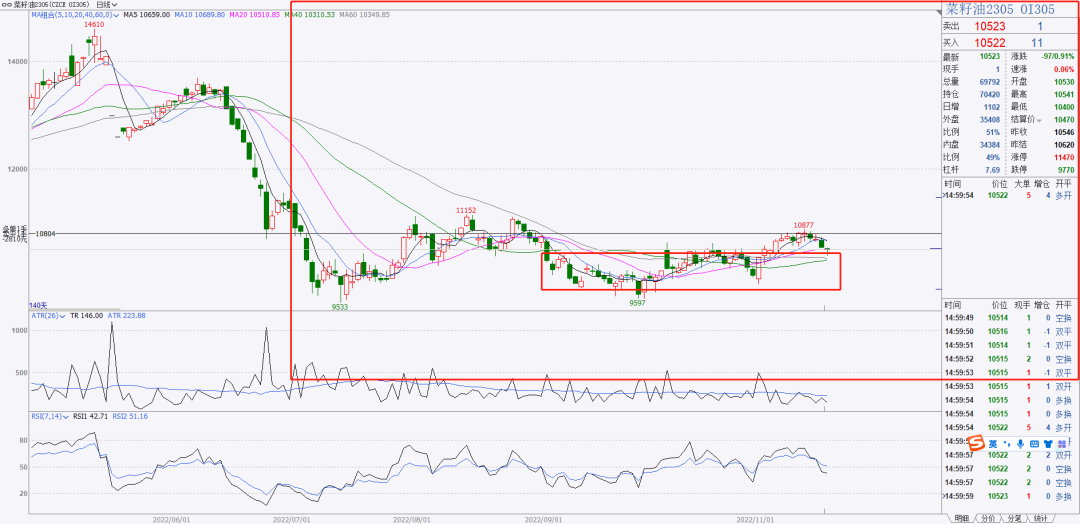 1、菜油01和05走的简直不像一个品种,我做01就好了。现在被套只能按照计划继续谨慎持有。菜油05好歹在成交密集区附近收了一个长下影,还可以等一下上涨。