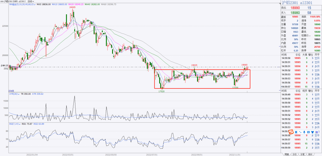 2、沪铝离开了震荡区间,我今天尝试了多单。