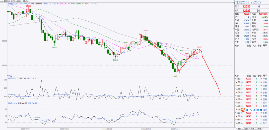 2、橡胶05关注行情能否反弹到60均线,能否出现3浪下跌行情。
