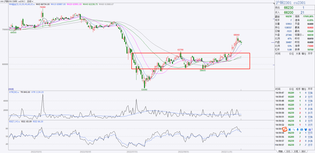 1、沪铜只看均线的话,是可以谨慎看多的,毕竟均线多头排列,但是不追高,等调整。