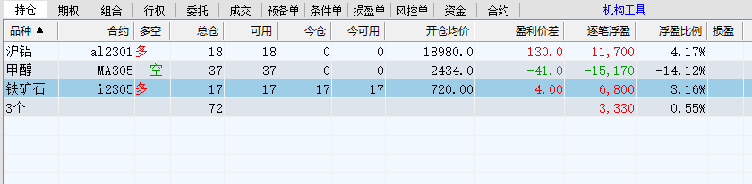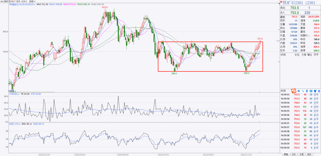 3、铁矿01今天增仓5.7万手,比05涨幅大,05铁矿已经突破了最近五个月的高点,我在大账户轻仓试了一点多单。