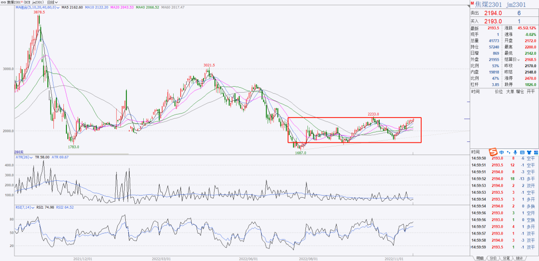 2、焦炭焦煤偏强震荡,但是没有突破前高,所以不追高,等调整。