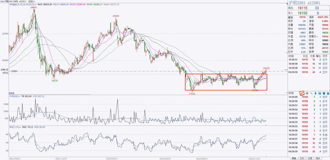 2、沪铝向上突破了矩形震荡区间,我轻仓做多了多单,继续持有。