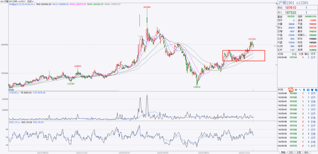 3、沪镍均线多头排列,也可以谨慎看多,观察行情调整的幅度。