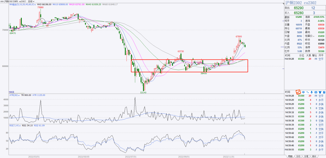 1、沪铜只看均线的话,是可以谨慎看多的,毕竟均线多头排列,但是不追高,等调整。