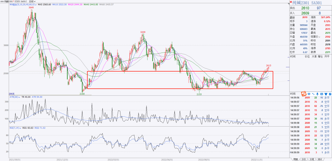 4、纯碱的均线已经多头排列了,我在等调整之后的做多机会。