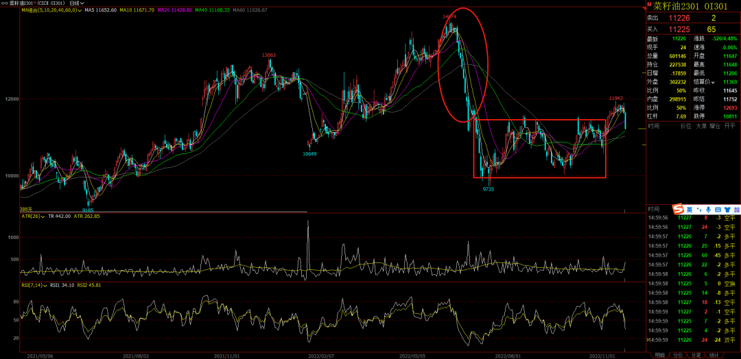 我的技术分析太容易被当前的市场情绪影响了,一叶障目不见泰山,结果最近没判断好。菜油我太想做突破了,只看到了矩形突破,没看到矩形上面6月份的成交密集区,忽略了压力位。