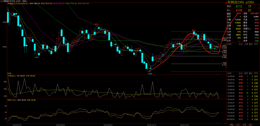 农产品。我昨天判断了棕榈,今天看暂时是正确的,不过这个我没有做。最近先缓缓神,主要是思考完善一下交易系统。棕榈是一个123浪的形态,现在2浪结束,三浪有可能启动。