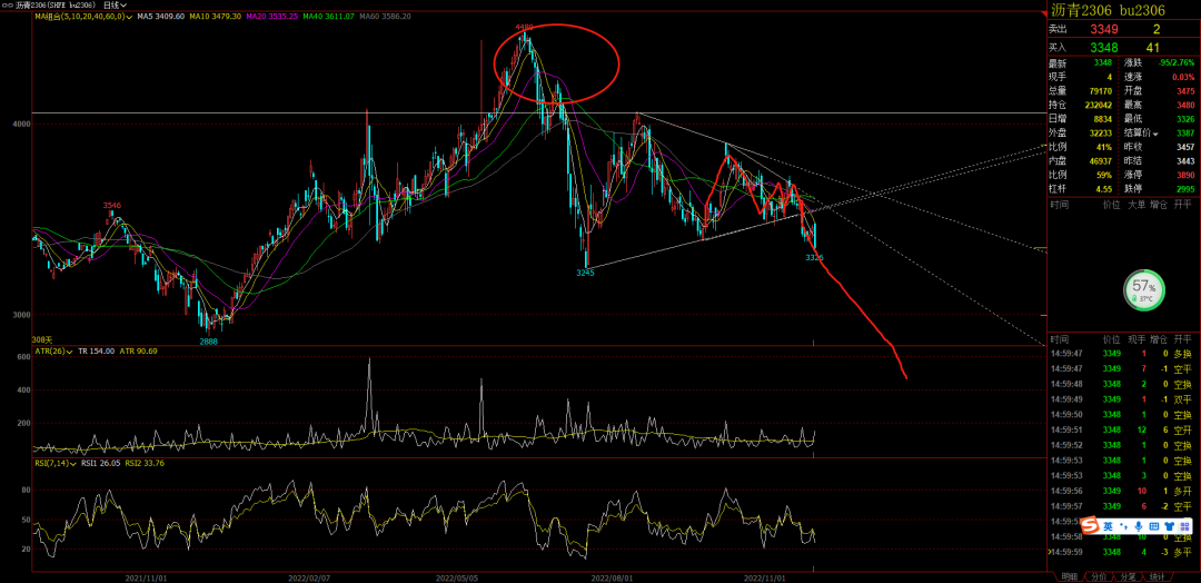 总结:今天是无单一身轻啊,我的系统加上定式之后,信号就少了很多,所以不用随便激动了,耐心等着就行。黑色我偏多看待,现在等行情再涨几天。化工里面原油大跌,这个波动太大了。我比较看好的是沥青,有下跌的定式,有三角形区间,现在已经跌破了三角形区间,均线向下发散并且出现了反包的标K ,唯一的不好就是沉淀资金不太大,可以轻仓试试空单。