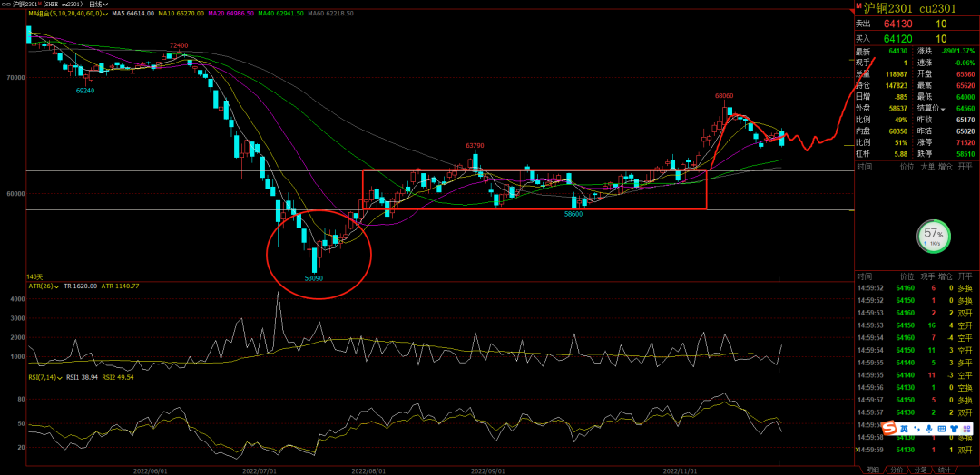 有色:有色的老大还是沪铜啊,虽然均线多头排列,定式是向上的,但是现在回调比较多,现在要等连续的回踩有效才可以做多。