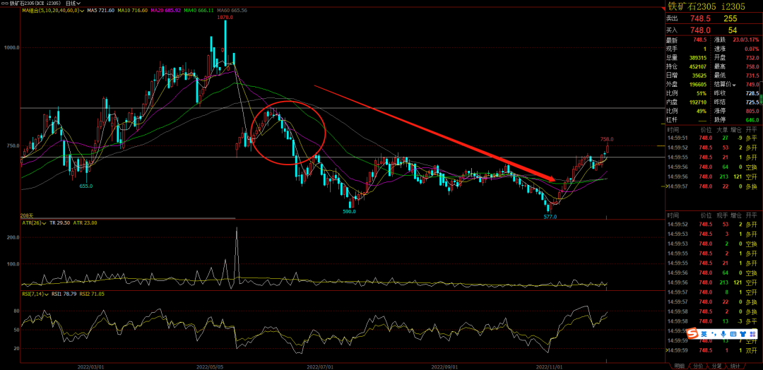 黑色:黑色今天简直太牛了。螺纹的主力已经是05了,螺纹05向上突破3800之后我会考虑等待影线标k做多。铁矿05的均线已经开始多头排列,前高是6月的高点840附近,现在不追高,等影线标K 。