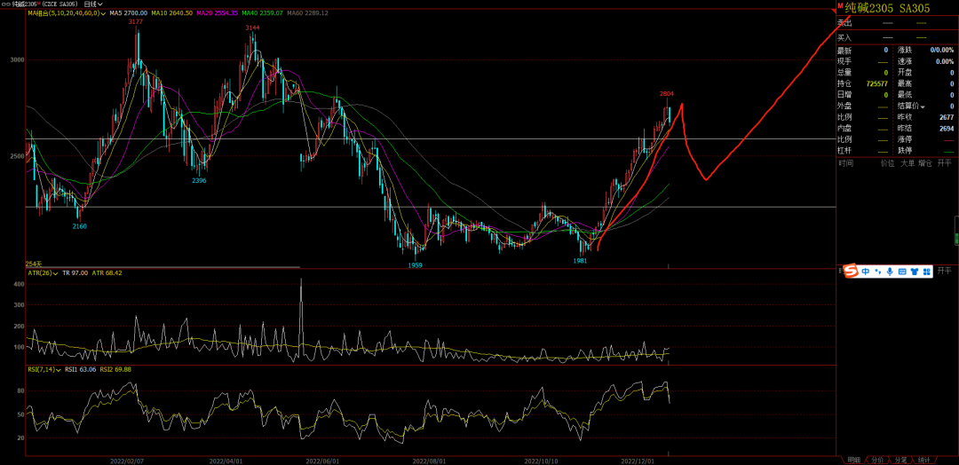 化工:纯碱今天跌的也挺多的,纯碱好像总是和黑色同步的。纯碱这一波涨的已经很多了,调整一下也正常的。我希望这次调整的深一点。