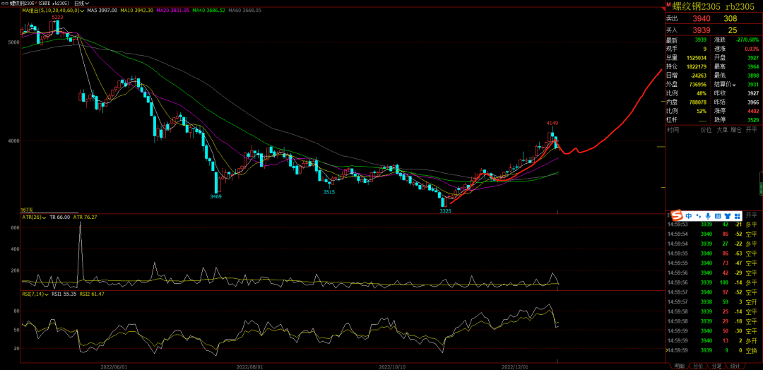 黑色:螺纹连续两个大阴线之后今天止住了跌势,上涨一浪已经很明显了,调整之后开启上涨三浪的概率大,行情下蹲一下会涨的更高。这个时候要耐心等待影线出现,出现影线就说明出现了支撑。