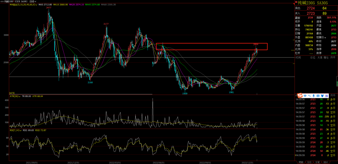 化工:纯碱的上涨趋势不会轻易结束,现在要观察调整的时间和幅度。现在距离上方压力越来越近,纯碱这个一浪走的太长了,二浪调整的大一些才好进,小幅的调整进场总感觉不踏实。