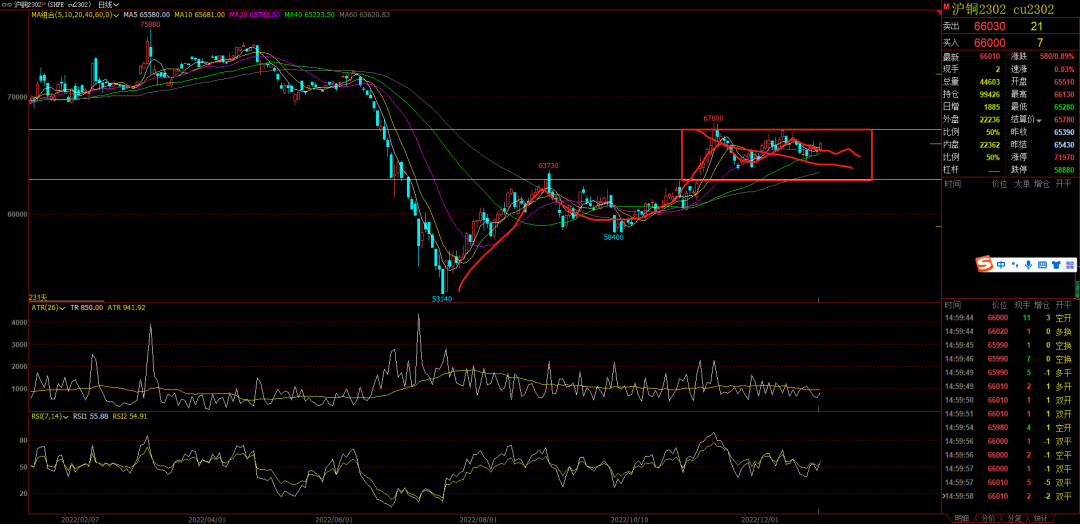 有色:沪铜的行情比不上螺纹火爆,但是也得密切关注,毕竟沪铜是一个风向标。现在沪铜日线是一个上涨趋势,现在矩形震荡,等调整或者突破才参与,现在矩形里不值得参与。