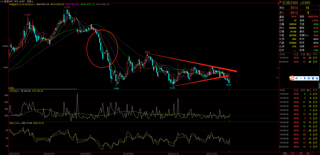 农产品:油脂今天走的太意外了,减仓大涨,我的空单就过了一天好日子。现在我还是继续看空油脂的。下跌的形态还在,不会那么容易见底的。豆油虽然8100支撑明显,但是之前两次到8100之后的反弹幅度都不大,这个地方还是有机会被跌破的。棉花要继续关注,一浪已经出现,等二浪调整。