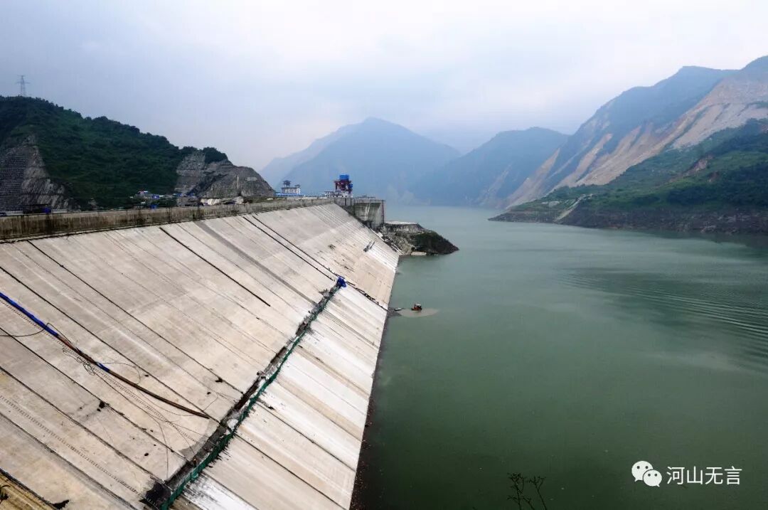 大渡河干流上最早建成的龚嘴电站水库,1978年建成投产。现在是泥沙淤积最为严重的水库之一,已丧失水库调节及防洪功能。上图远处为龚嘴电站大坝及大坝上的闸机。 范晓摄影